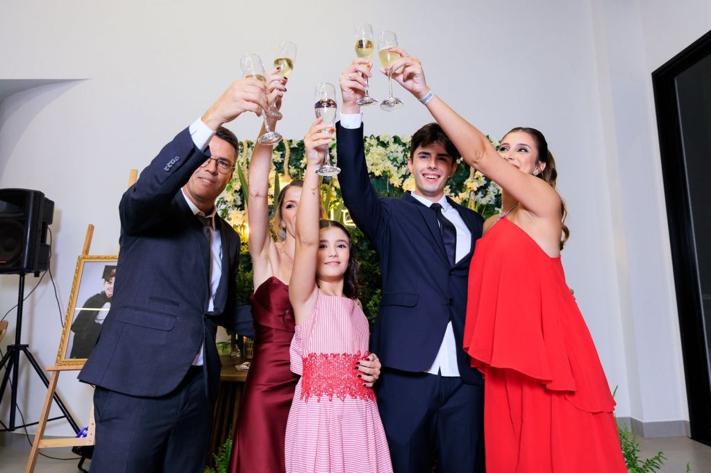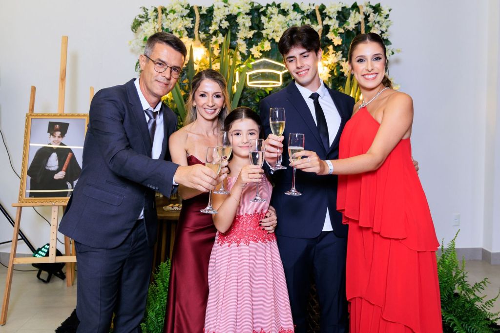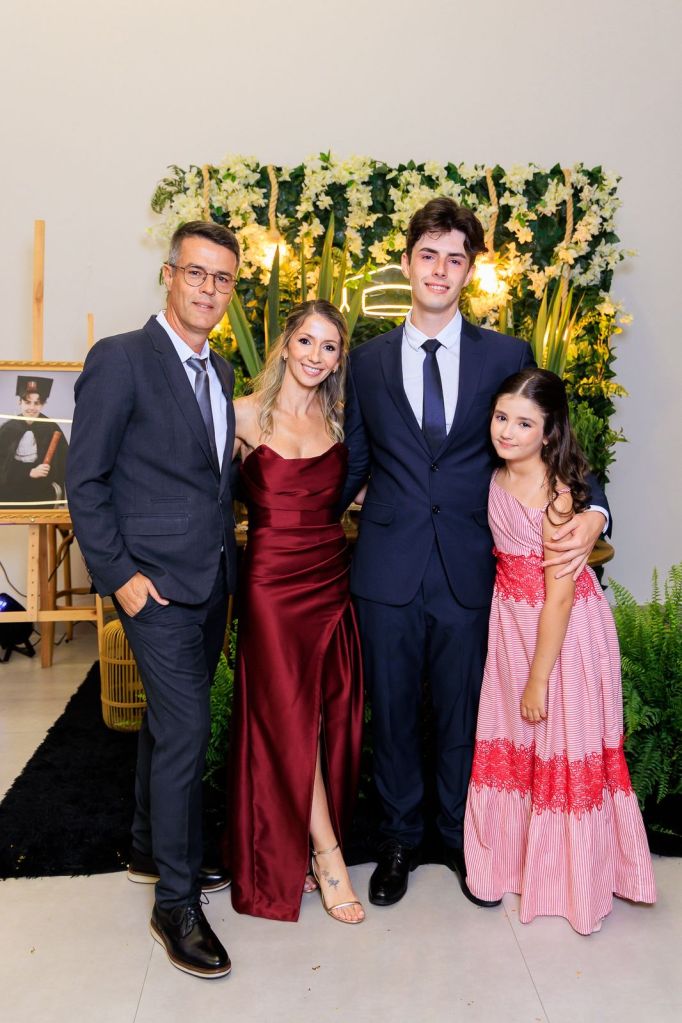 Ao lado de sua família — presença forte, unida e inspiradora — Vinícius celebrou essa conquista com a essência que sempre o marcou: humildade, luz e um coração firme nos valores cristãos. Em cada abraço e sorriso, era possível sentir a gratidão a Deus por conduzir cada passo até aqui.